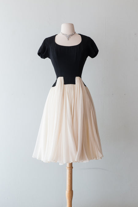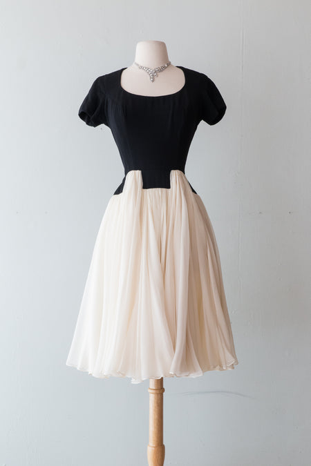Sublime 1950's Patullo Jo-Copeland Black Silk Cocktail Dress / Small