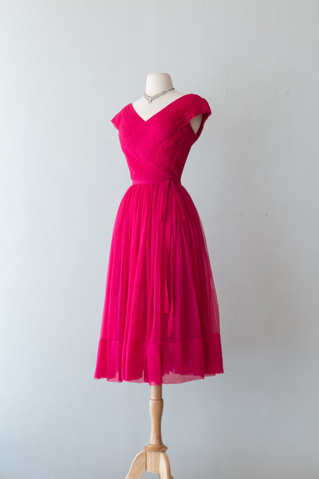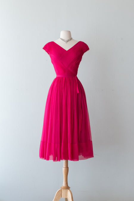 Sublime 1950's Silk Chiffon Cocktail Dress in Fuchsia Pink / SM