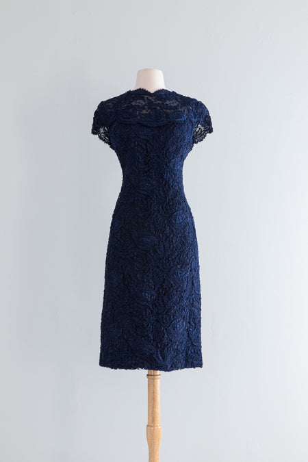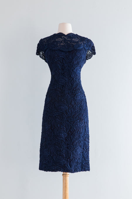 Sublime 1960's Midnight Blue Alencon Lace Cocktail Dress / ML