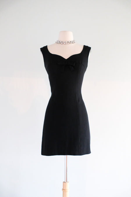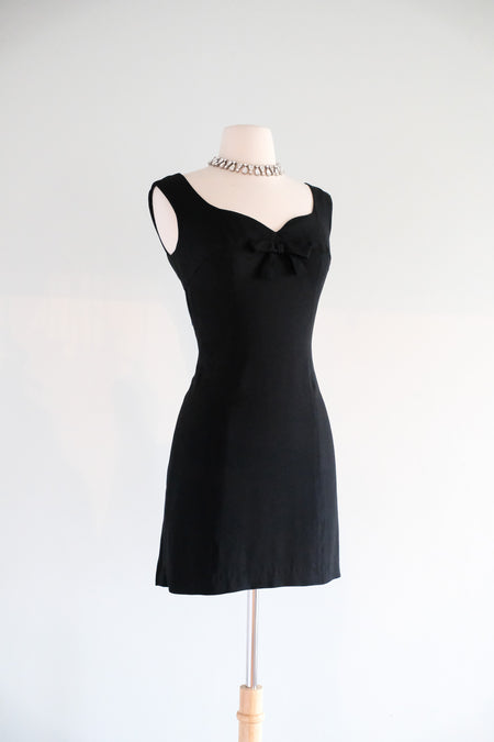 Vintage 1960's Black Velvet & Satin Bow Dress by Lanz / XS