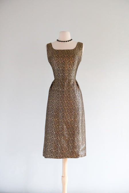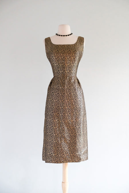 Vintage 1960's Black & Gold Brocade Wiggle Dress / Small