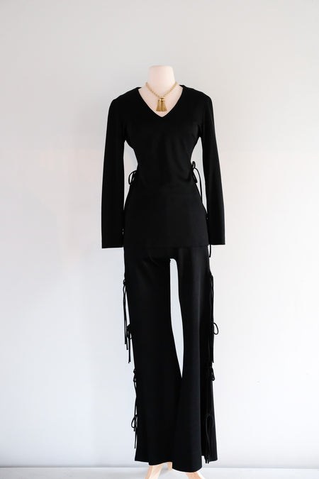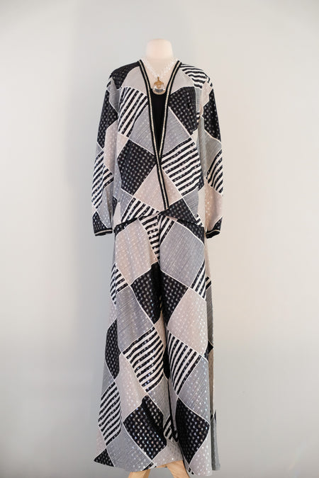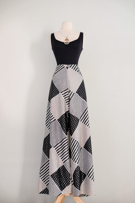 Sold Out Vintage 1970's DISCO QUEEN Silver Lurex Plaid Palazzo Pants with Matching Jacket / M $148.00