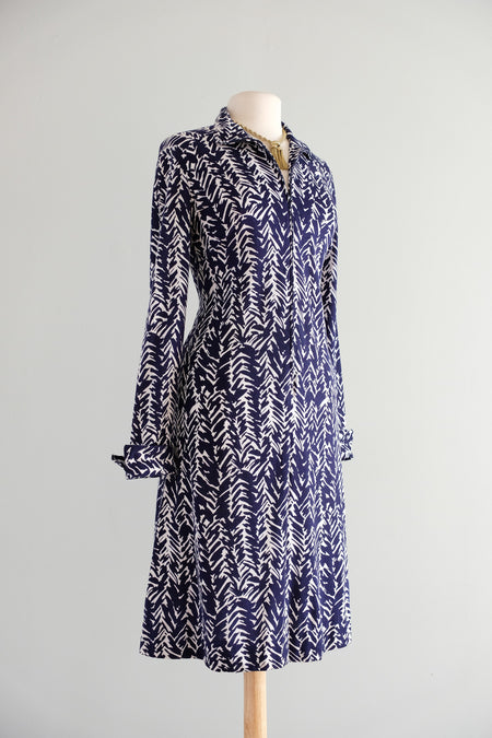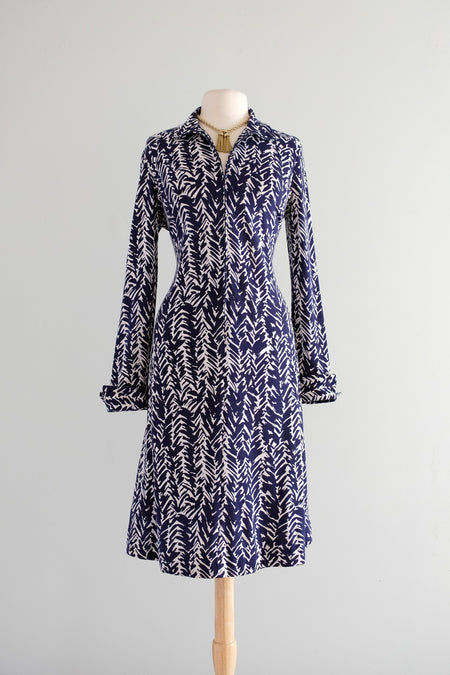 Sold Out Vintage 1970's Navy & White Cross Hatch Print Dress by Diane Von Furstenberg / Large $168.00