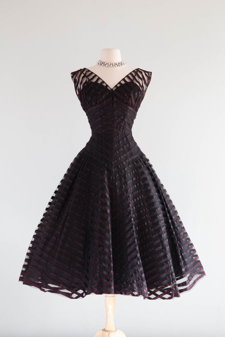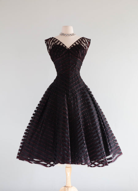 Sold Out Dramatic 1950's Black Chevron Ribbon Striped Party Dress From Saks Fifth Ave / Small $198.00