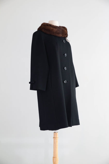 Elegant Late 1950’s Rothmoor Wool Coat with Bows and Mink Collar With Brooch / M