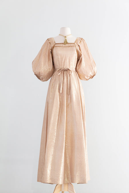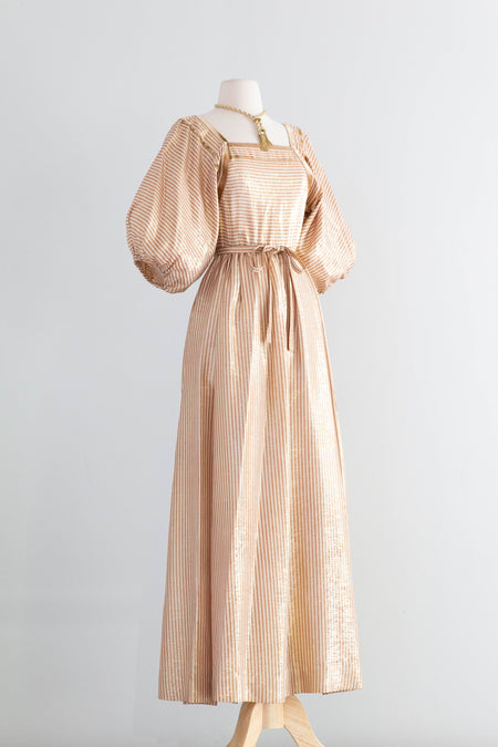 Fabulous 1970's Metallic Gold Silk Lame Evening Dress By Albert Nipon / Small