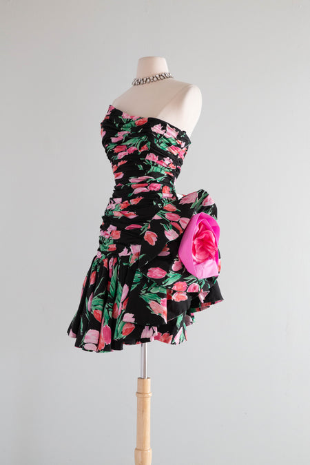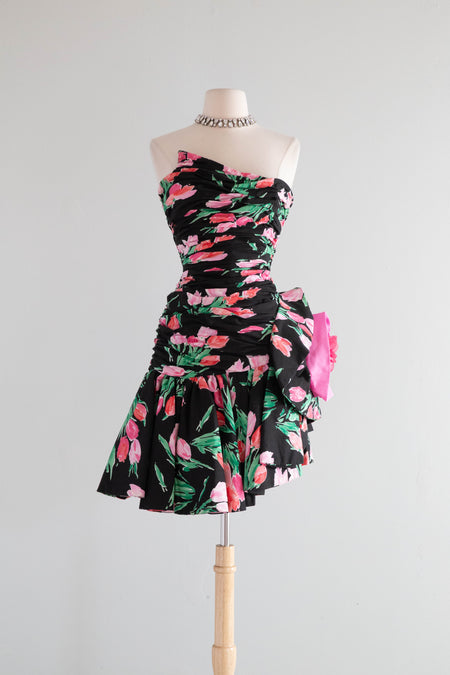 Fabulous 1980's Victor Costa Strapless Floral Party Dress / XS