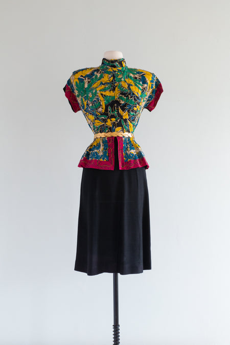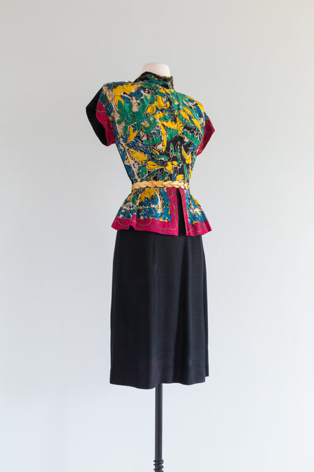 Sold Out Fabulous Early 1970's Cotton Window Pane Asymmetrical Maxi Dress By Mister Robert / SMall $148.00