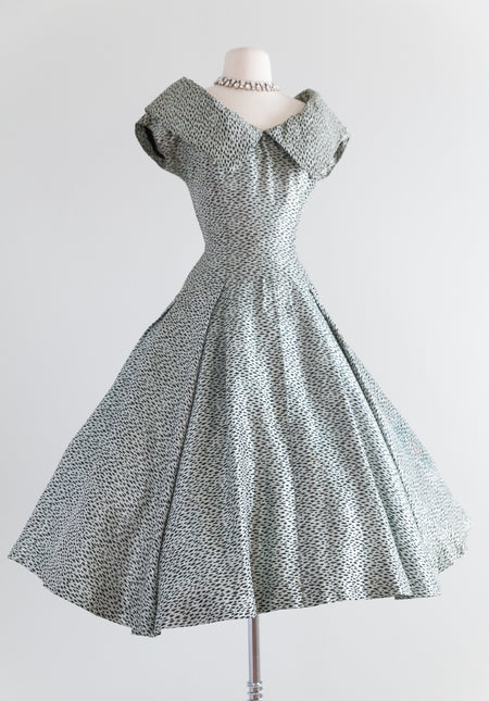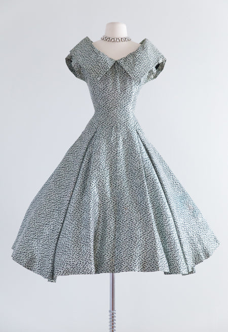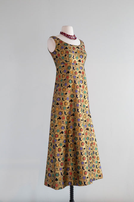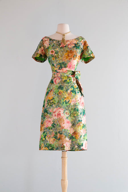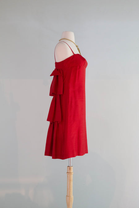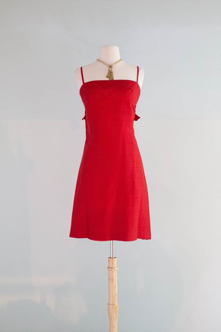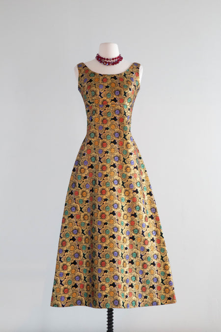 Sold Out Festive 1950's Fred Perlberg Cherry Red Silk Party Dress With Silver & Gold Print / Small $198.00
