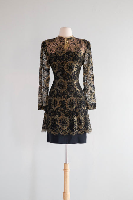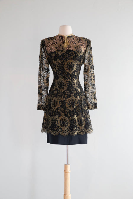 Sold Out Glamorous & Bewitching 1950's Black Illusion Lace Cocktail Dress From Fredricks of Hollywood / SM $398.00