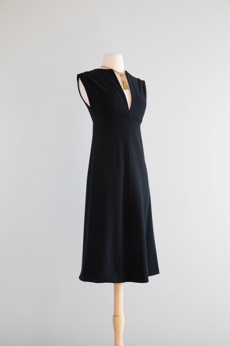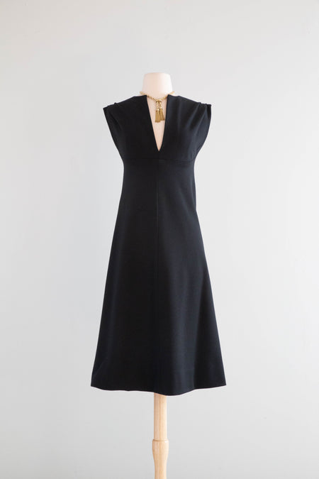 Iconic 1970's Halston Black Wool Jersey Dress / SM