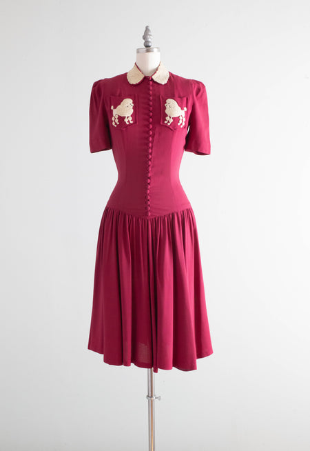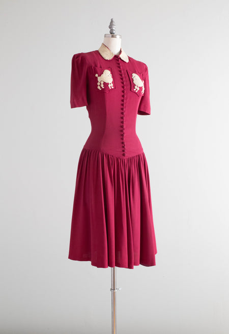 RARE 1940's Rayon Dress With Poodle Pockets By Doris Dodson / XS 🐩