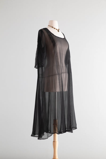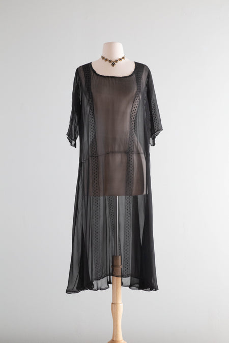 Antique 1920's Sheer Black Silk Chiffon Dress / ML