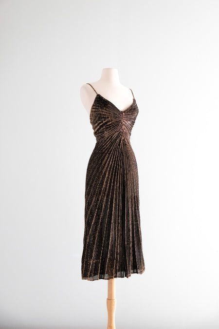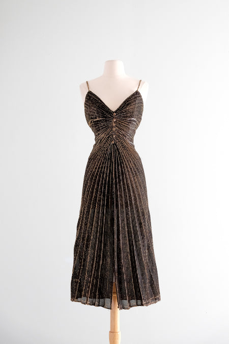 Sold Out DAZZLING 1970's Marilyn Monroe Black & Gold Lurex Accordion Pleated Party Dress / SM $168.00