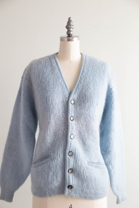 Rare 1960's Powder Blue Kurt Cobain Fuzzy Mohair Cardigan / ML