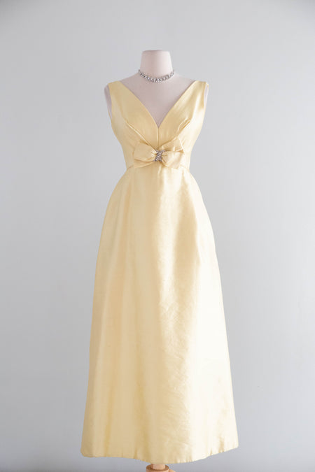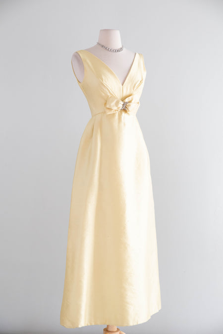 Elegant 1960's Silk Formal Dress In Butter Yellow From I Magnin / XS