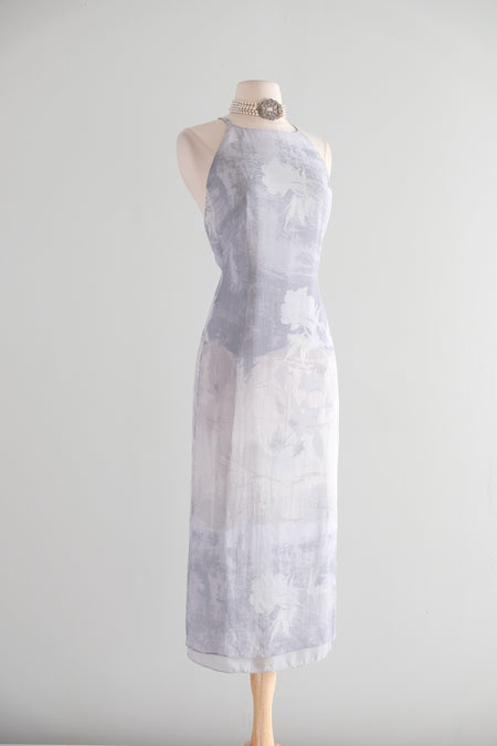 Vintage 1990's Mirror Gray Silk Chiffon Dress By Giorgio Armani / S