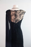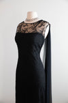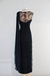 Elegant Early 1960's Feather Lace Evening Gown With Shoulder Swag From I.Magnin / M