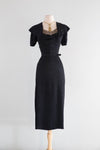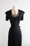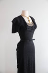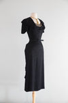 1940's Femme Fatale Black Rayon Cocktail Dress / S