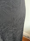 This elegant 1940s cocktail dress exemplifies wartime-era sophistication with a beautifully tailored silhouette. Cut from black rayon with a subtle woven leaf motif, the dress features softly structured short sleeves and a dramatic wide portrait collar framing an illusion lace-inset neckline. The fitted bodice is cinched with its original matching belt, accentuating the waist before falling into a fluid, mid-calf skirt with gentle drape.
