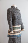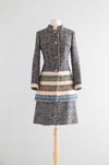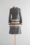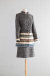 Chic 1960's Custom Couture Wool Tweed Suit With Bands Of Color / S
