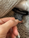 Coveted early 1980's chunky oatmeal wool cable knit long cardigan by I.B. Diffusion. Featuring slouchy shoulders, long sleeves and convenient side pockets. The perfect cardigan for fall. In excellent condition, freshly dry cleaned and ready to wear.