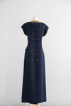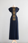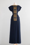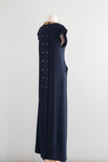 Elegant 1980s Karl Lagerfeld Navy Blue Silk Evening Gown With Gold Beading / M