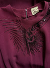 Elegant 1940's Claret Rayon Dress With Beaded Starburst Neckline / L