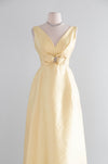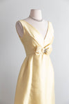 Elegant 1960's Silk Formal Dress In Butter Yellow From I Magnin / XS