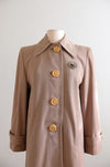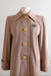 Vintage 1940's French Beige Wool Gabardine Swing Coat with Butterscotch Buttons/ M