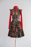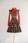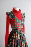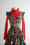 Vintage 1950's Holiday Plaid Pinafore Dress with Ruffles / M