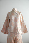 Vintage 1950's Cherry Blossom Chinese Silk Brocade Pajama Set / S