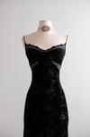 Vintage 2000's Black Velvet & Lace Cut Out Gown by Cosabella / M