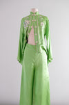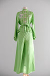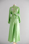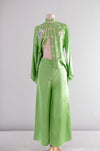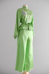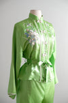 Vintage 1950's Lime Green Chinese Silk Pajama Set / S