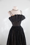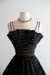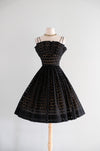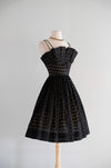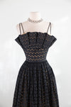 Vintage 1950's Black Eyelet Illusion Cotton Party Dress by Lou-Ette / XS