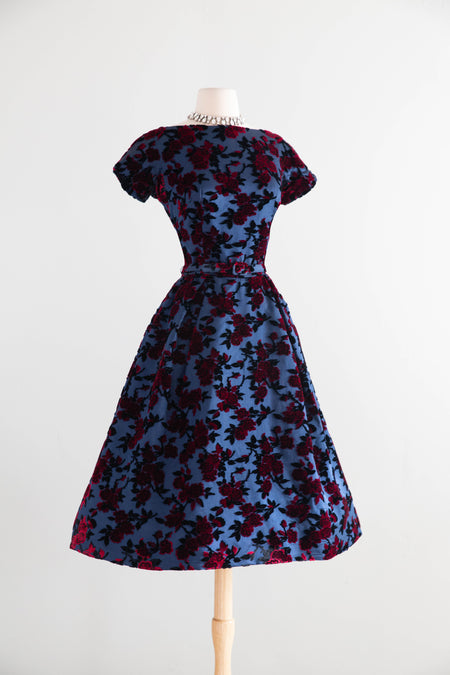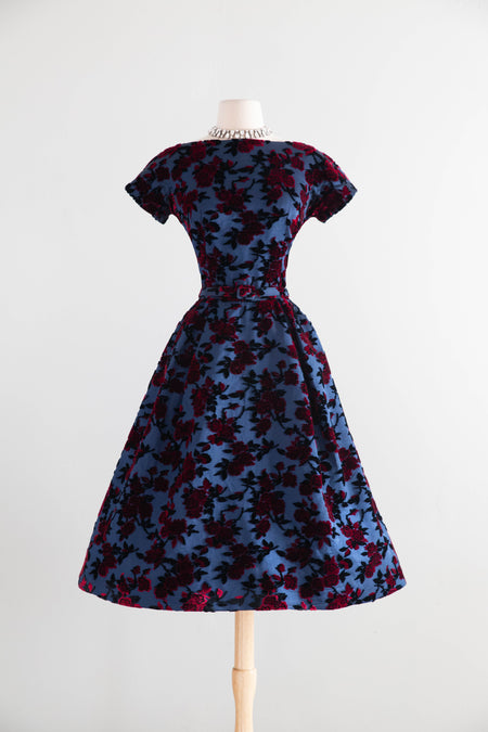 Sold Out Gorgeous 1950’s Samuel Winston by Roxane Demi Couture Flocked Velvet Cocktail Dress / SM $598.00