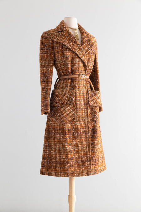 Sold Out Gorgeous Rare Early 1970s Salvatore Ferragamo Italian Tweed Coat, Florence, Italy / M $698.00