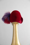 Stunning Scarlet Felt Hat with Feather Pom, circa late 1940s By Bernice Charles
