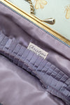 This gorgeous 1950's large needlepoint handbag from Christine Custom Bags showcases exceptional craftsmanship. Based out of Detroit, Michigan, Christine Custom Bags with renowned for transforming needlepoint artistry into stunning custom handbags, each piece features coordinated, vibrant linings with elegant pleated pockets. True to the brand’s signature style, this handbag is finished with gold metal hardware, a kiss clasp closure, and a chain handle. Highlighted by a colorful floral pattern and a matching lavender purple lining, it exemplifies timeless vintage design and expert detail.