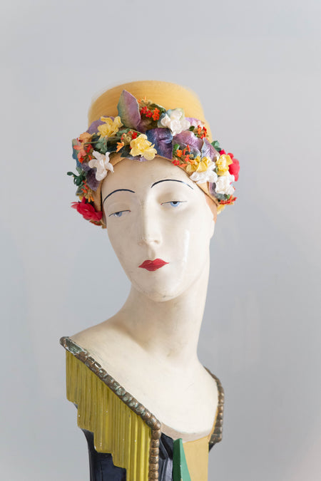 Sold Out Wonderful 1950's Lazarus Paris-Cincinnati Chartreuse Felt Hat With Velvet Rosettes / 22 $148.00