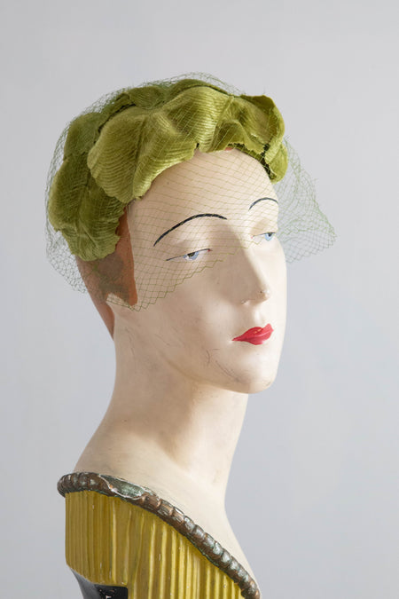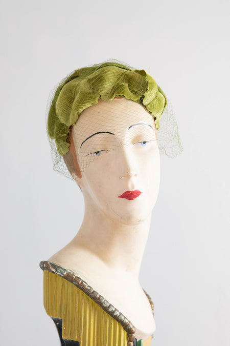Marvelous 1950's Velvet Cabbage Leaf Cocktail Hat / OS