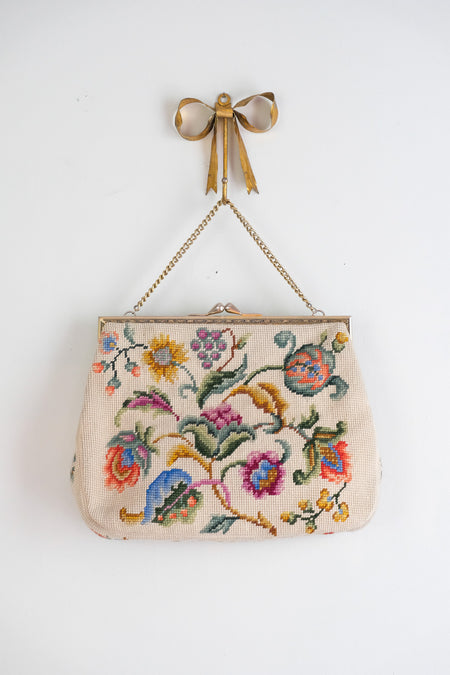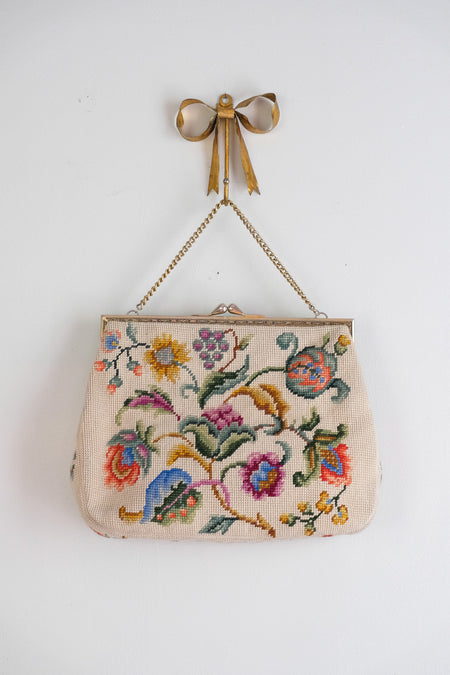 Vintage 1950's Colorful Floral Needlepoint Handbag by Christine Custom Bags