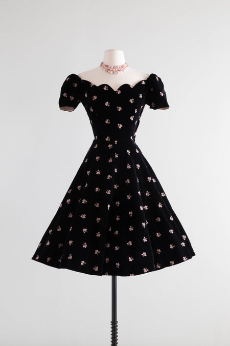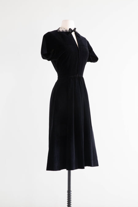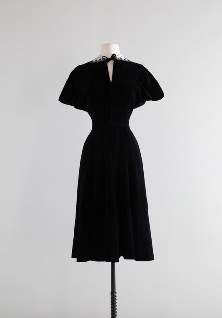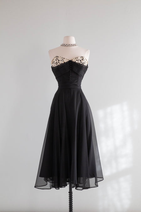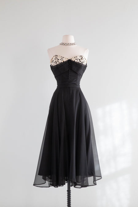 Stunning 1950's Black & Ivory Lace Evening Dress / Small