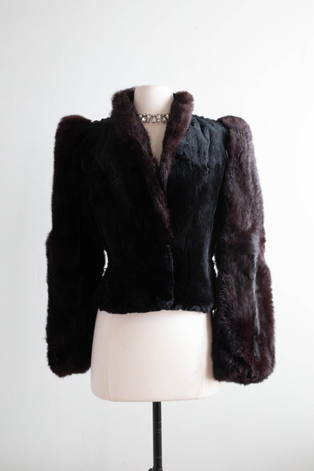 Exquisite 1950's Black Cotton Lace Wiggle Dress with Fur Cuffs / Sz M