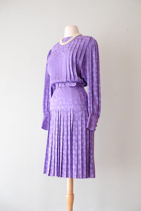 Celestial 1980's Adele Simpson Star Struck Violet Silk Dress/ Sz M