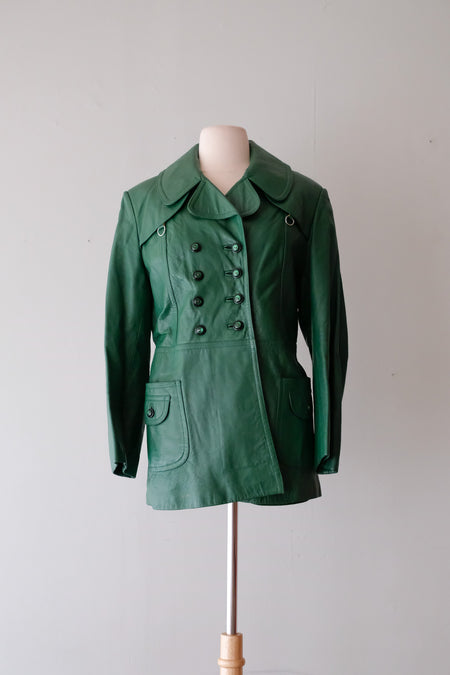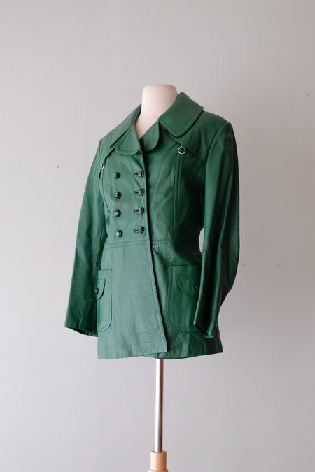 Amazing 1970's Dark Green Leather Jacket / Sz M