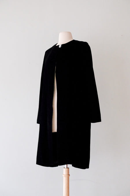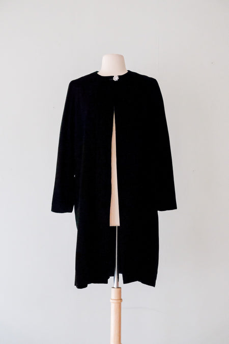 Gorgeous 1960's Black Velvet Swing Coat / Sz S