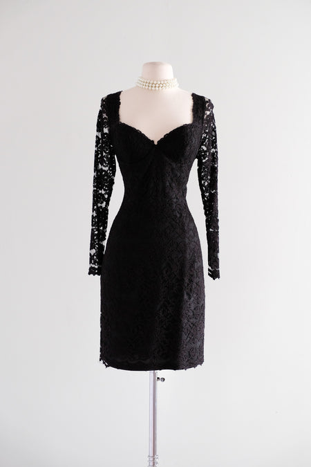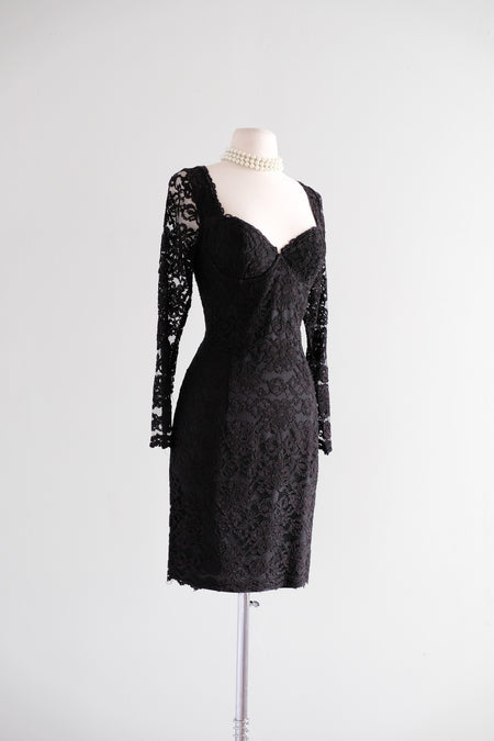 Sexy 1990's Black Lace Bustier Cocktail Dress / Sz M