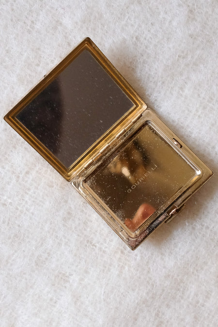 Vintage 1950's Ruby Red Rhinetone Goldtone Compact by Gourielli