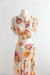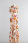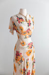 Beautiful Late 1930's Ivory Chiffon Floral Print Gown / SM